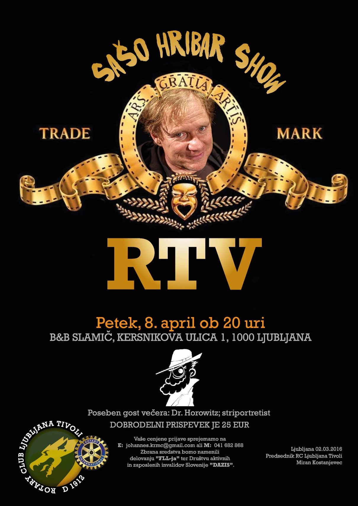 Z dobrodelno prireditvijo 8. aprila 2016, na kateri je nastopil Sašo Hribar, smo zbrali sredstva za pomoč Zavodu Super glavce, ki v Sloveniji vsako leto pripravi tekmovanje osnovnošolcev “First Lego League”, ter Društvu akltivnih in zaposlenih invalidov DAZIS.